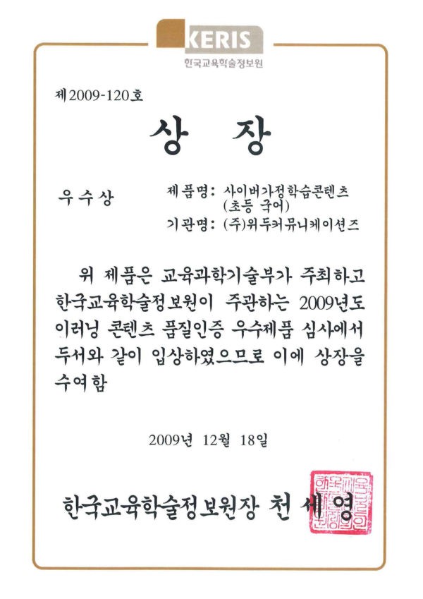이러닝 콘텐츠 품질 인증 우수 심사 페이지 정보 작성자 WeDu 댓글 0건 조회 6,571회 작성일 19-05-30 19:32 본문 2009-12-18 우수상 제 2009-120호 이러닝 콘텐츠 품질 인증 우수 심사 한국교육학술정보원장 천세영 List Previous이러닝 기업의 수요 창출과 품질 향상 19.05.30 Next제 8회 디지털 이노베이션 대상 19.05.30